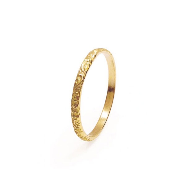 Charmée par les bijoux anciens, je trouve que la ciselure permet de créer des détails et apporte une matière qui change de l’anneau classique. La bague VERA mesure 2,2 millimètres de large et permet de voir les nuances du ciselage ce qui lui donne profondeur et douceur tout en restant discrète. Cette jolie bague VERA sera l’alliée parfaite pour mettre en valeur votre bague de fiançailles.