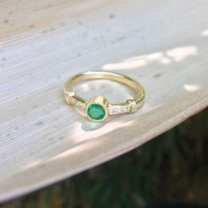 Guillaume a demandé la main de Clélia avec cette sublime bague sertie d’une émeraude. La date de leur rencontre y est inscrite à l’intérieur.